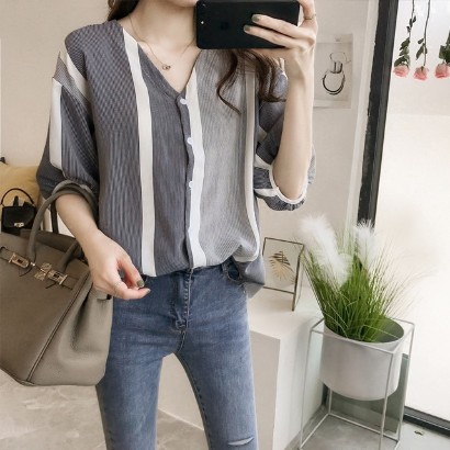 เสื้อชีฟองหลวมๆสไตล์เกาหลี