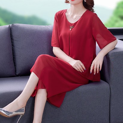 ชุดเซ็ทสองชิ้นเนื้อผ้าชีฟองสีล้วน