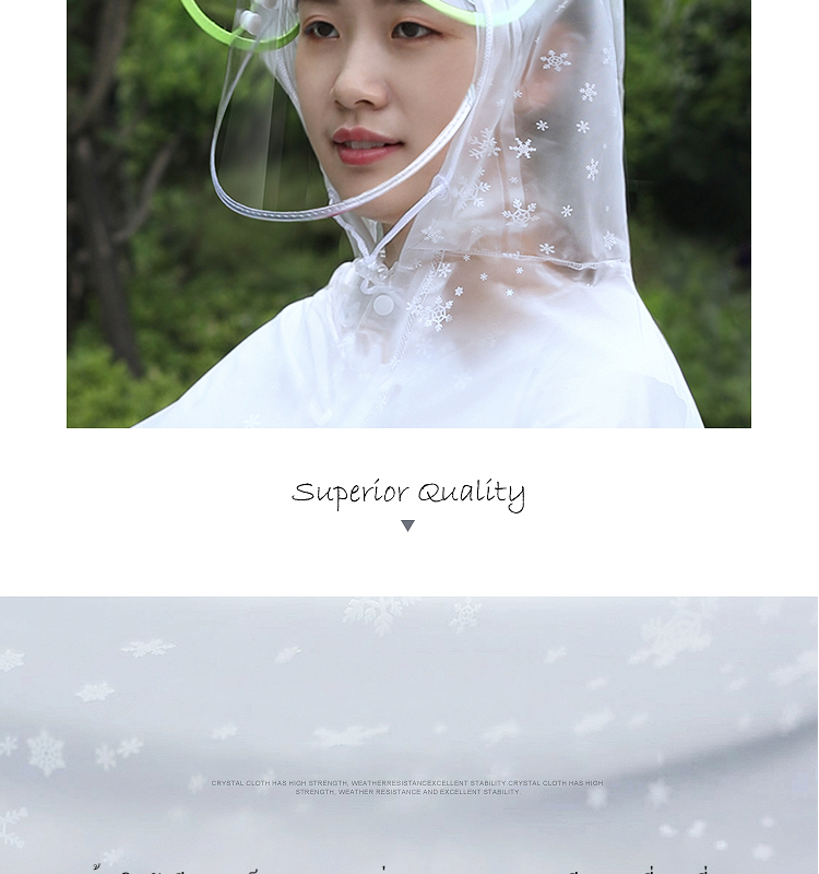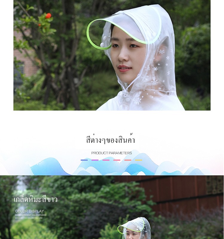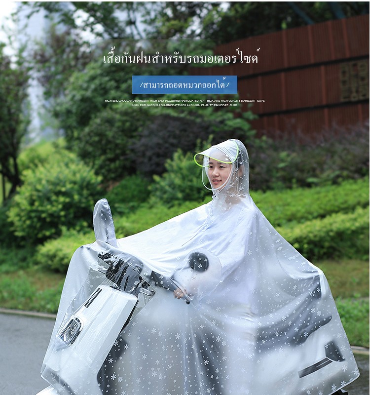 โปร่งใสครึ่งหนึ่ง ชอบความรู้สึกมัวๆเเบบนี้มาก เสื้อกันฝนสภาพดีไม่มีเสียหาย ไม่มีกลิ่น คุณภาพเยี่ยม