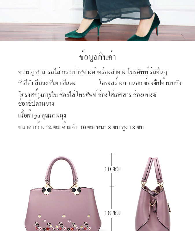 เป็นกระเป๋าที่ปราณีตมาก ตัวงานและผิวสัมผัสค่อนข้างดี รูปทรงสวยมาก รูปแบบแฟชั่นดูดีมีเสน่ห์ความเป็นผู้หญิง ความจุค่อนข้างใหญ่ ของใช้ในชีวิตประจำวันใส่ได้หมด และเข้าชุดง่าย