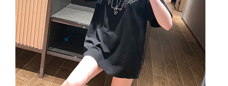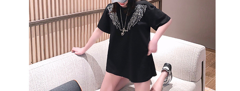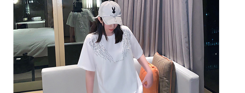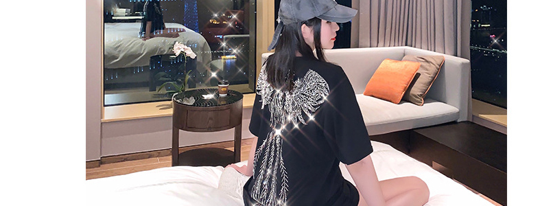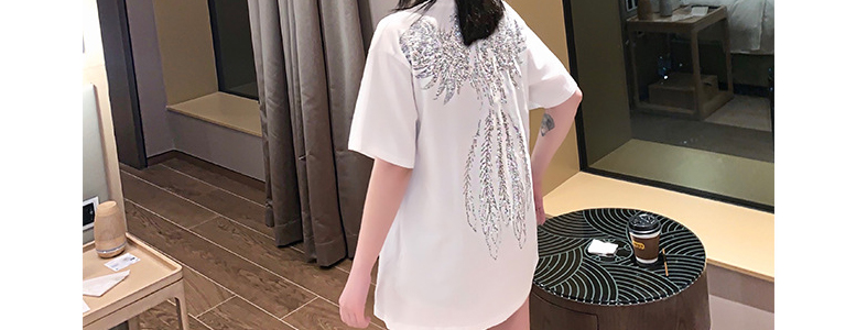 เสื้อผ้าสวยมากดูมีเอกลักษณ์รูปแบบอินเทรนด์หลวมดูผอมเพียวติดเพชรเป็นรูปปีกแวววาวสวยงาม