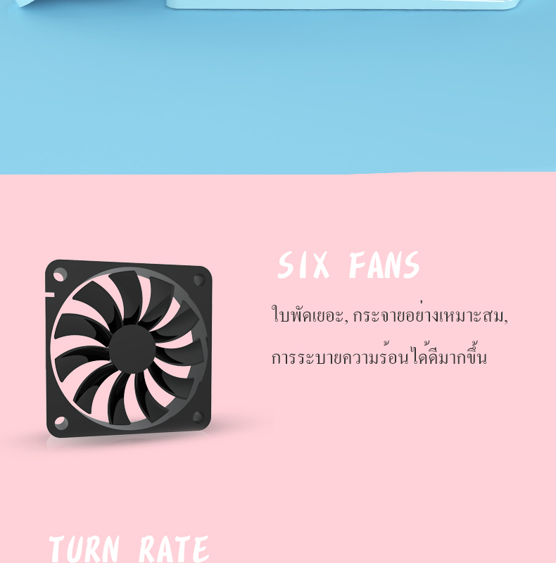 ใบพัด 6 อันพัดพร้อมกันจะทำให้ระบายความร้อนได้ดีขึ้น, คุณภาพเหนือราคา, ใช้เเล้วโอเคมาก, วัสดุก็ดูเเข็งเเรง