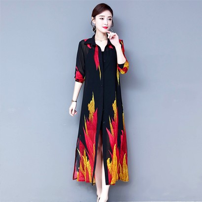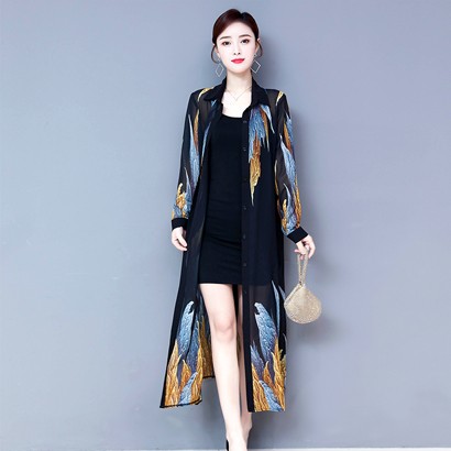 เสื้อคลุมกันแดดผ้าชีฟองพิมพ์ลายแบบยาว